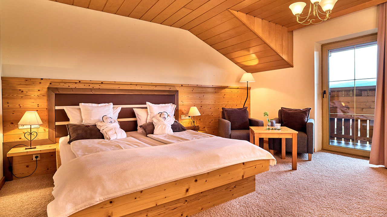 Enjoy a soothing atmosphere surrounded by beautiful nature with a panoramic view of the Bavarian Forest mountains in our natural estate. Relax in the 3000m² forest wellness world with indoor pool, heated outdoor pool and sauna village. Enjoy the variety of our own village butcher in our ¾ luxury pension. Experience a temporary home - stylish ambience and comfort in our suites and new natural rooms.