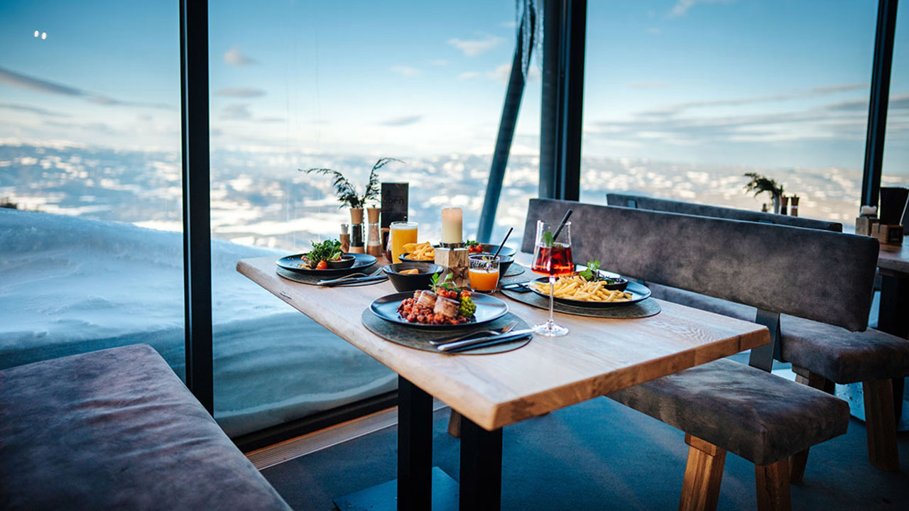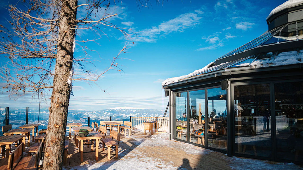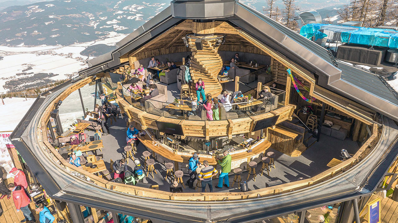 Das Panoramarestaurant "oben" hat im Dezember 2022 eröffnet, liegt in 1708 Metern Höhe direkt bei der Bergstation der Petzen Bergbahnen und ist behutsam in die intakte Natur eingebettet. Besucher haben die Möglichkeit eines einzigartigen Ausblicks auf die majestätische Berg- und Tallandschaft, während sie im Restaurant regionale und saisonale Schmankerl genießen können. Bei schönem Wetter kann eine Dachhälfte geöffnet werden, damit die Gäste noch mehr in die Natur eintauchen können.