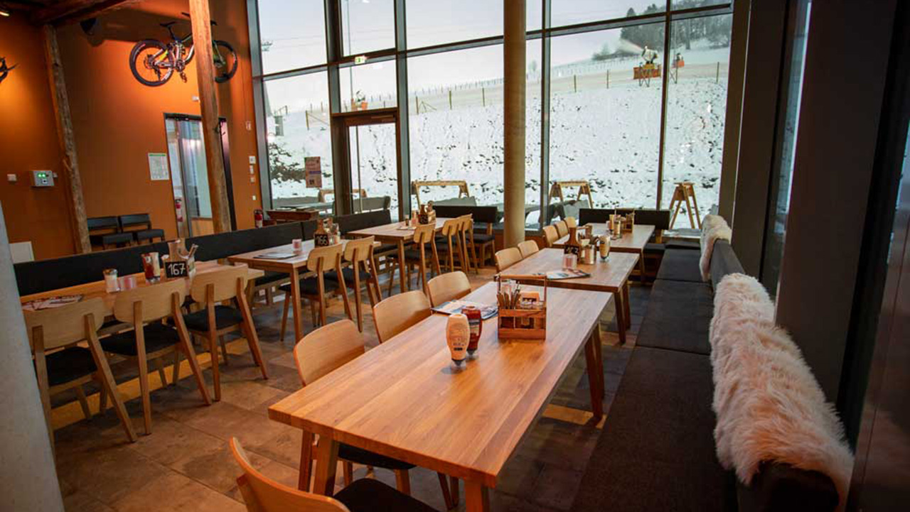Die K1 Hütte ist der perfekte Einstieg in die Bikepark-Trails und eine gute Adresse für eine kurze Pause oder entspanntes Genießen. Als Partnerbetrieb des Willinger Brauhauses serviert das Team neben einem schnellen Imbiss regionalen Speisen und Willinger Bierspezialitäten. Im Gastraum mit Kaminfeuer sind historische und moderne Elemente harmonisch kombiniert. Panoramafenster und Sonnenterrasse geben den Blick auf die Trails frei.